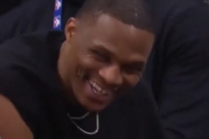 GIF-三分飙垃圾话 引威少大笑