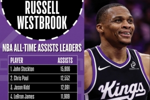 本场比赛,威少生涯助攻数有望连续超越马克·杰克逊和纳什,上升至NBA历史第五位。