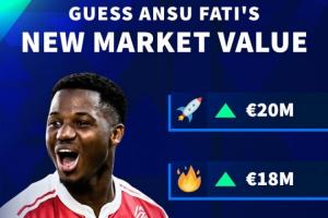 体育资讯03月24日讯 德转发布身价预告,23岁法蒂身价确定上涨。