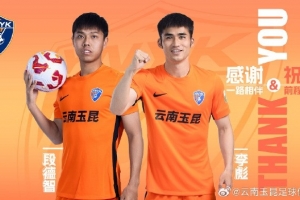 下一篇: 云南玉昆官方:王星皓、李博加盟球队,荣家辉上调至一线队