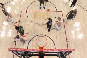 GIF-约基奇走到兰德尔身边吵架